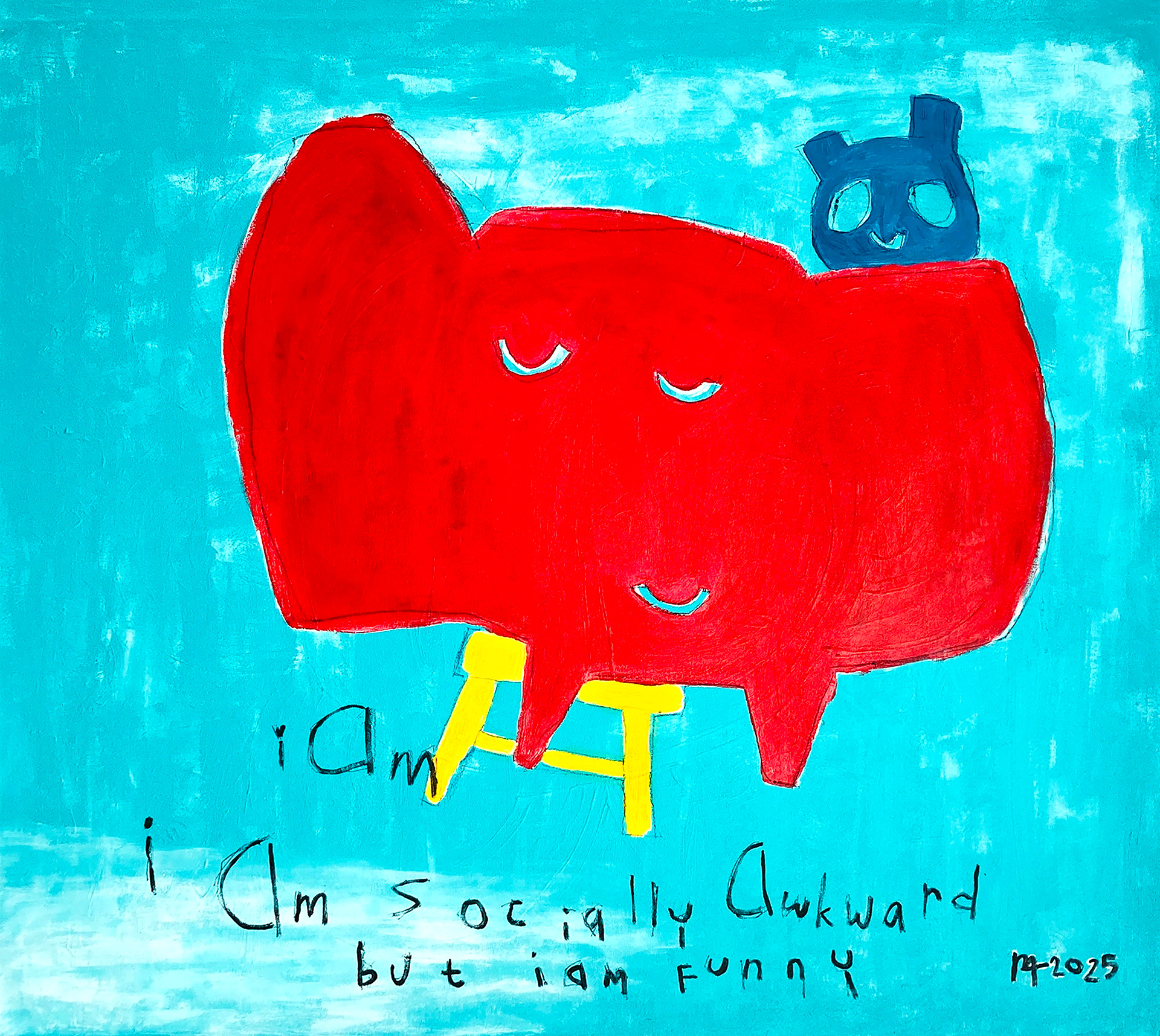 Meet Cute, Acrylic and Pencil on Canvas, 60x80cm, 2025